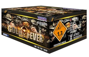 144 shots of jaw dropping gold effects, straight fired from this four cake compound, starting with gold tails to the huge bursts before screeching tourbillion tails rise to gold brocades with a hint of glitter, more screechers to gold glitter stars before a relentless bombardment of gold tails and gold and a bit more gold and just when you thought it couldn’t get any better…. a volley of super loud titanium salutes!