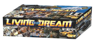 LIVING THE DREAM IS A MIXED FIRING PATTERNED COMPOUND, FULL DISPLAY IN A BOX. 244 SHOT FROM BOTH 25MM AND 30 MM / WITH 3756 G OF POWDER PACKED INSIDE AND AN EXTENDED DISPLAY DURATION OF 1 MIN 50 SECONDS. THIS IS A BREATH TAKING WATCH.