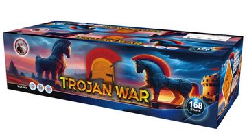 Trojan War, a remarkable 168-shot compound firework from Caractacus Potts Fireworks, delivers an action-packed 70-second spectacle from a single fuse.