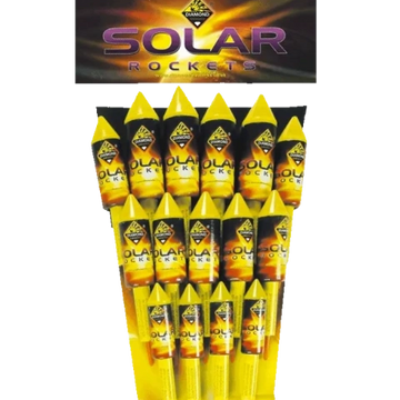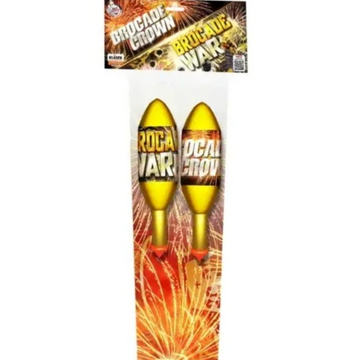 A pack of 2 large rockets from Primed Fireworks. Travelling 100m in to the sky and containing 167g of NEC you will be extremely impressed with the gold brocade it produces... Stunning!!